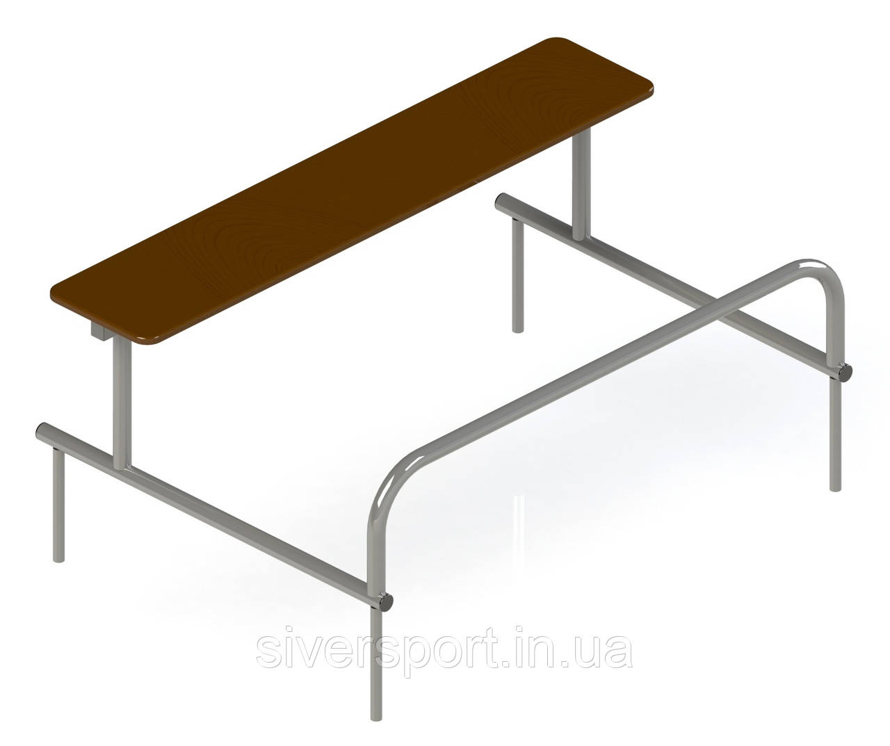 Характеристика: стійки, що несуться — металеві труби ø102х3 мм, підставка з металу 10 мм (кріпиться до закладної), пластикові заглушки на всіх болтових з'єднаннях, гумові ручки, вологостійка фанера.