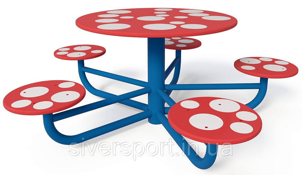Пісочний столик "Мухомор" ТЕ313 - чудовий додаток для облаштування дитячого майданчика. На столику діти можуть викладати різні фігурки та не боятися, що хтось випадково наступить. Столик додасть простору фантазії, а також дасть можливість дорослому включитися в дитячу гру з піском. Столик буде служити Вашим діткам відмінним місцем для настільних ігор. Цей комплект розрахований на невелику компанію і включає в себе цілий столик і п'ять круглих стільчиків. Яскраві соковиті кольори, в які пофарбований столик Мухомор, припадуть до душі кожній дитині, при цьому чудово впишуться в загальний ландшафт.