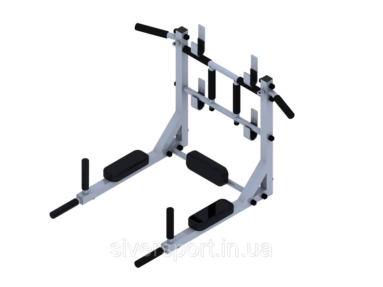 В комплект виробу входять анкера кріплення до стіни. Характеристика: профіль 40х40х2 мм, виліт турніка 650мм, довжина 1030 мм, виліт брусів 860 мм. Максимальне навантаження 250 кг. Труба турніка ø27x2.8 мм. Конструкція: розбірна. Кріплення: на 4 зацепах.
